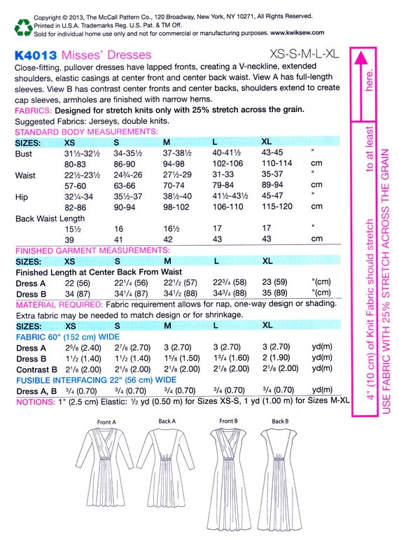 Kwik Sew 4013 Modest Knit Dresses Ruched Draped Fit And Flare Etsy